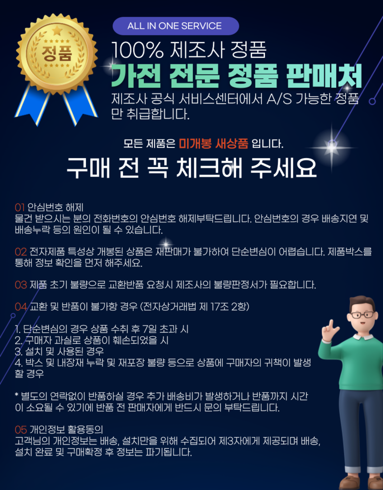 | A/S 책임자와 전화번호 | 상품 상세페이지 참조 |